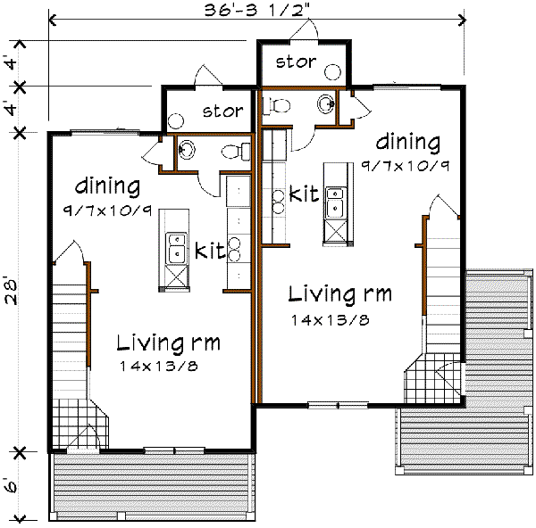 Hace bastante que no publico ningún plano de algún duplex hoy vamos a cambiar eso. Me encontré con este plano, ideal para una esquina. Me parece muy practico… ideal para tener nuestra casa y junto a ella otra casa para alquilar.